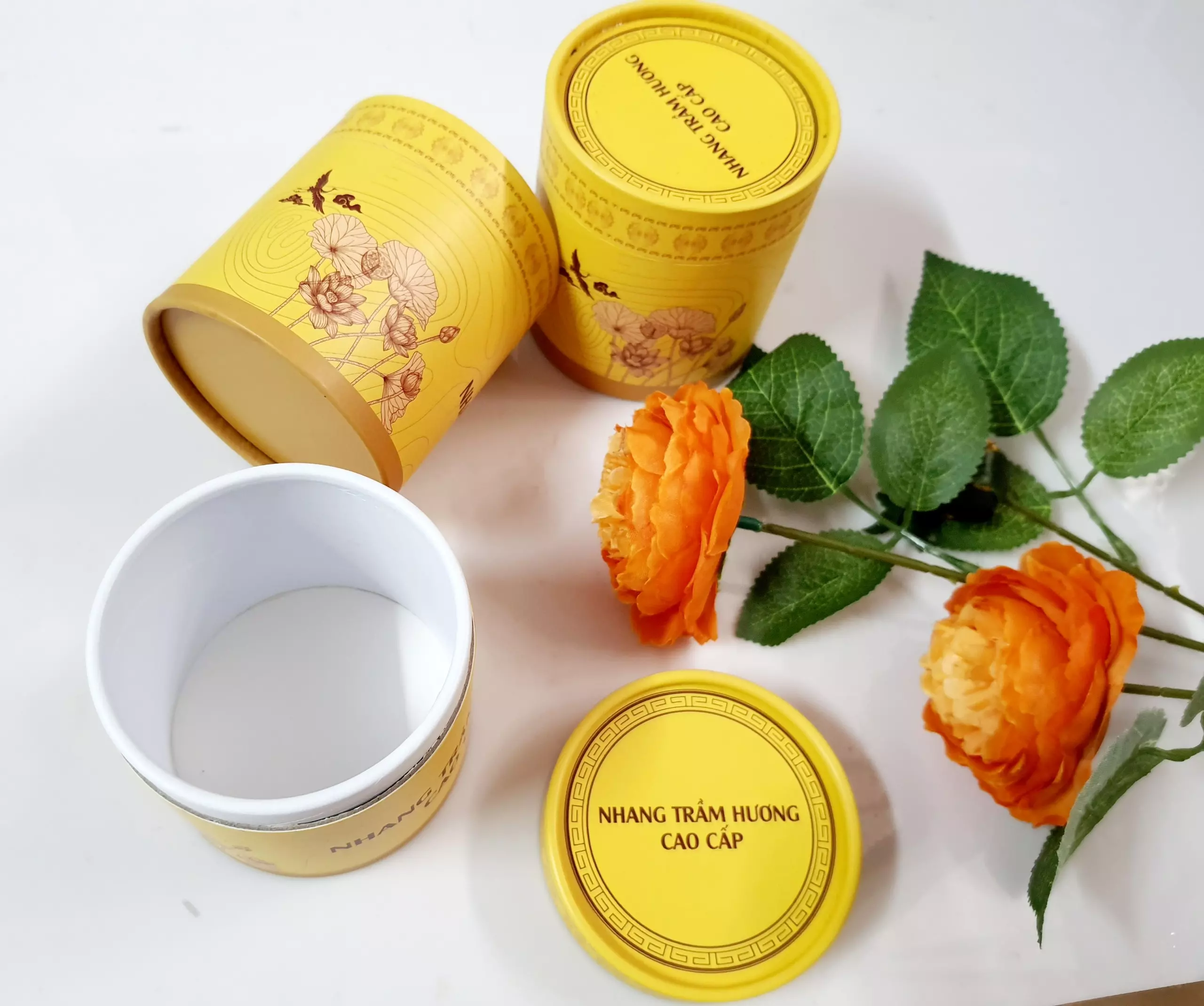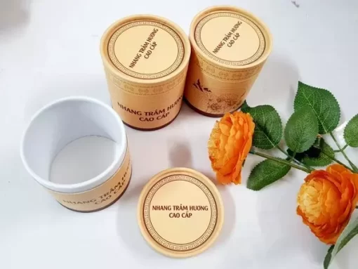 - Gia công: Hộp trầm hương được cán màng bảo vệ mực in và sản phẩm bên trong. Các góc được bo tròn và cắt viền chính xác, mang lại vẻ ngoài tinh tế và sự hoàn hảo trong từng chi tiết.